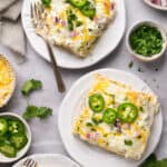 Everything you love about your favorite enchiladas but lightened up and made easy with this fun stack variation! This Green Chili Chicken Enchilada Stack is made with sweet, juicy chicken paired with creamy green chili sauce, tortillas, and cheese. Definitely a dinner the whole family will love!